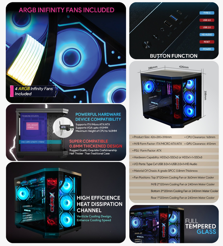 | Motherboard Support | ITX / Micro ATX / ATX |
