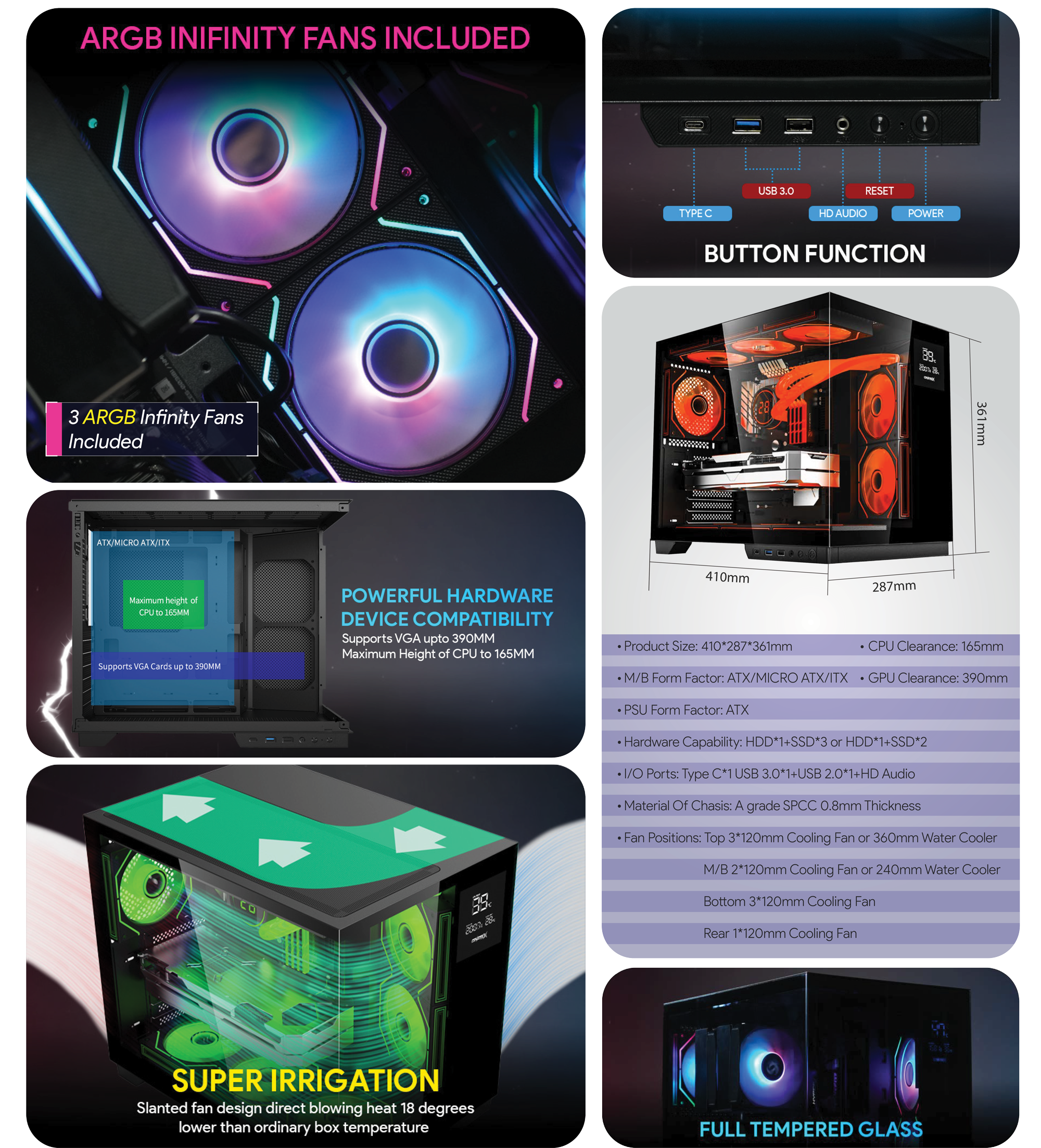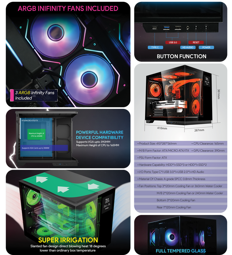 | Motherboard Support | ITX / Micro ATX / ATX |