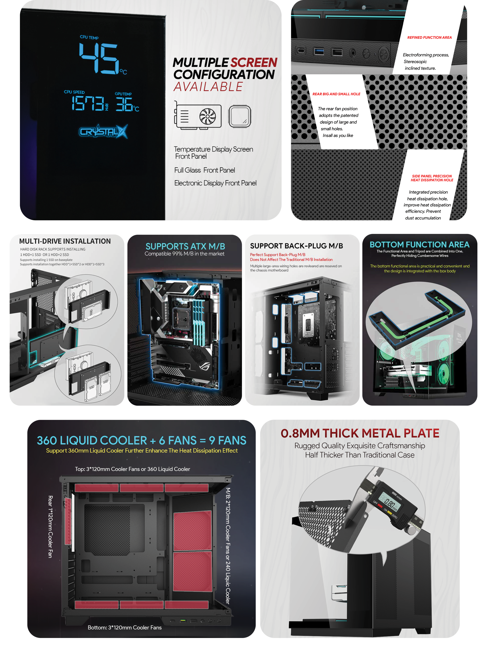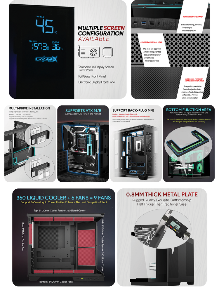 | Cooling Support | Up to 9 fans / 360mm water cooler |